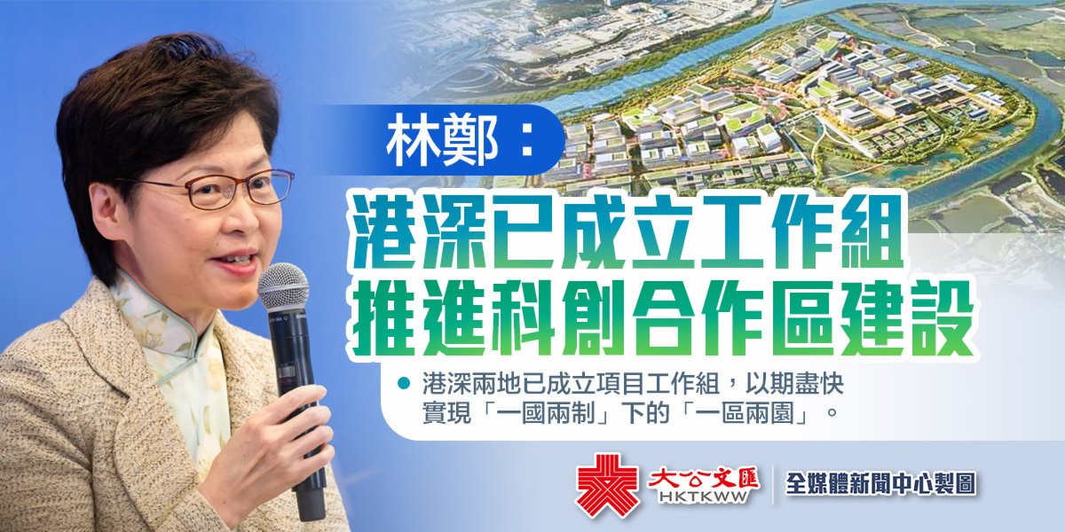林郑月娥说,深港科技创新合作区是推进粤港澳大湾区建设国际科技创新中心的重要引擎,并感谢中央在国家“十四五”规划纲要中支持深港河套为粤港澳合作平台之一,她指出港深两地已成立项目工作组,以期尽快实现“一国两制”下的“一区两园”。