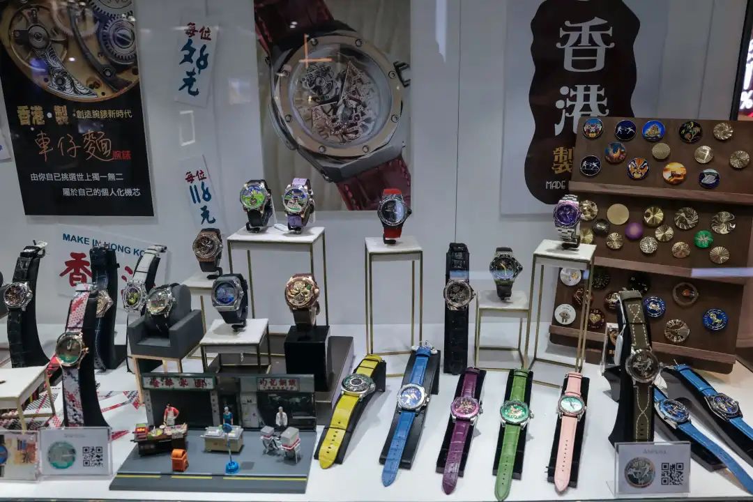 图为参展商展示香港制造的腕表产品。