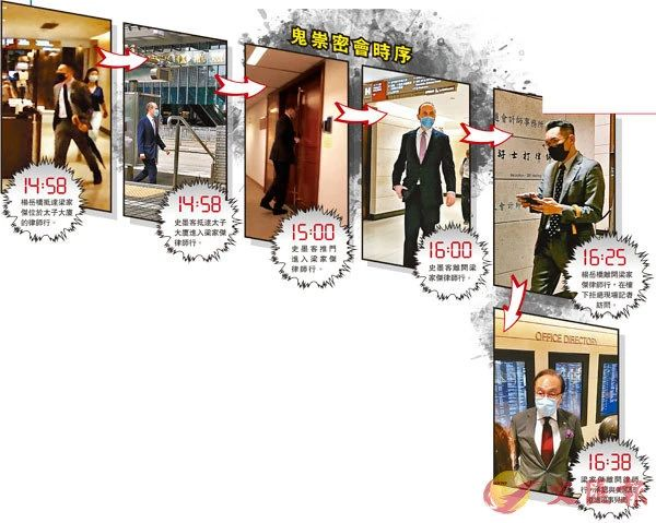 今日有人发现史墨客到访梁家杰位于中环的律师楼,而该党党魁杨岳桥亦有出席,会面超过1个半小时才结束。梁家杰指由于礼节关系,不便透露会面内容,但强调会面属恒常交流,大家会就香港情况作讨论。梁亦指今次会面是数星期前约定,并非因DQ事件才约见对方。
