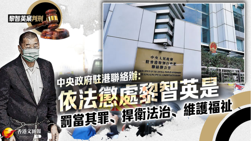 2月9日,中央人民政府驻香港特别行政区联络办公室发言人发表谈话,坚决支持香港特区履行维护国家安全的宪制责任,坚决支持香港特区维护国家主权、安全、发展利益,依法惩治危害国家安全的犯罪行为和活动,坚决支持香港特区司法机构对反中乱港首恶分子黎智英串谋勾结外部势力危害国家安全等罪行作出公正判刑。