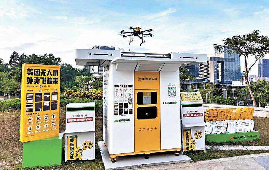 ●美团运送外卖无人机降落指定位置。两地专组今首会面 共商新领域发展大计