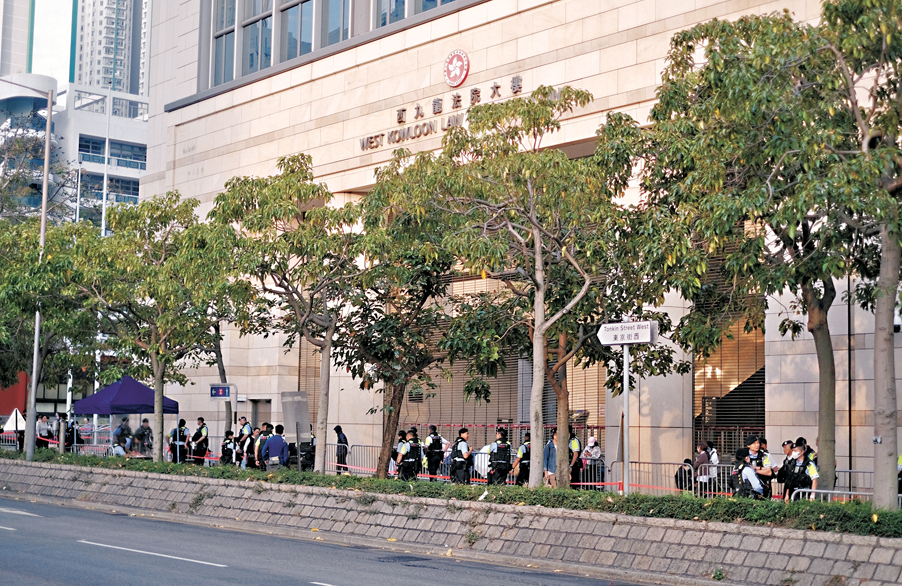 “35+串谋颠覆政权”案23日在西九龙裁判法院宣布判决。 图为西九龙裁判法院外围。 香港文汇报记者涂穴 摄