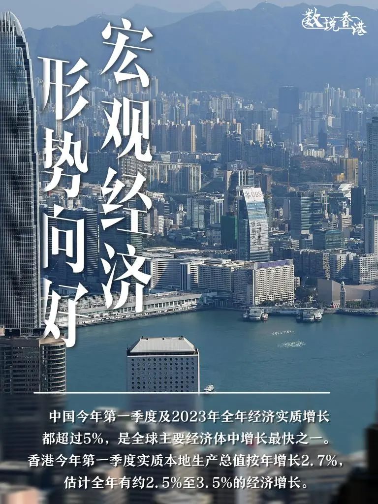 自2023年初全面恢复通关后,香港通过开展各项活动不断推动经济改善,2023年恢复3.3%的正增长。承接经济稳步发展的势头,今年第一季度实质本地生产总值按年增长2.7%,估计全年有约2.5%至3.5%的经济增长。