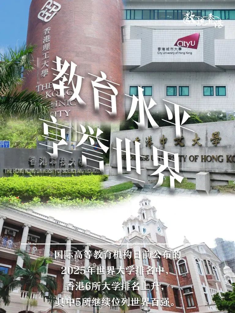 国际高等教育机构日前公布的2025年世界大学排名中,香港6所大学排名上升,其中5所继续位列世界百强。香港的大学获得国际高度评价,在亚洲区更是名列前茅,显示香港在全球学术界享有极高声誉。