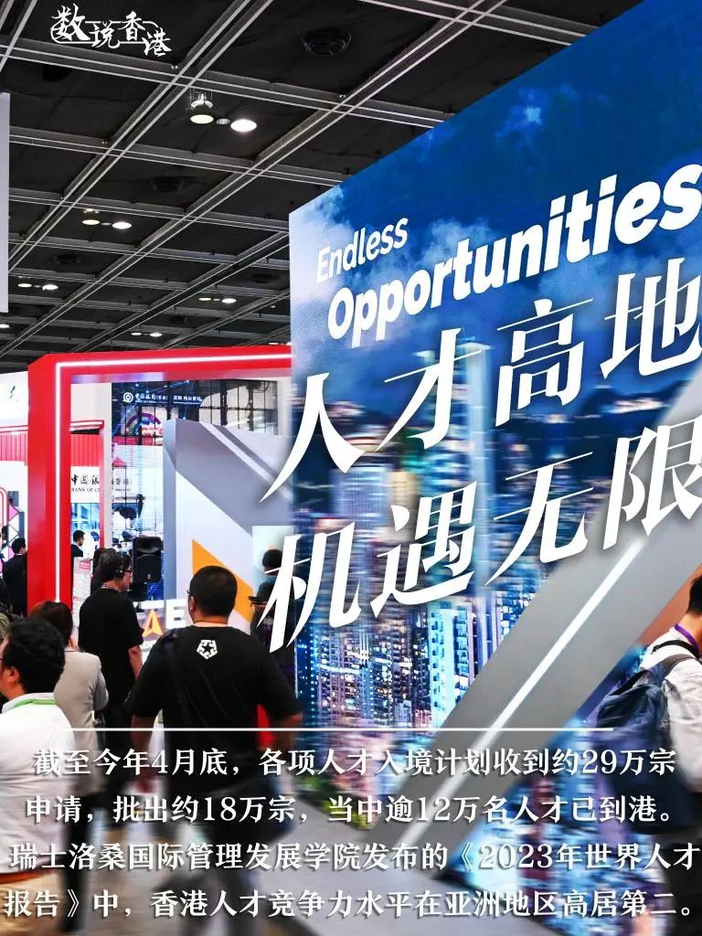 庞大的机遇吸引人才来港发展。截至今年4月底,各项人才入境计划收到约29万宗申请,批出约18万宗,当中逾12万名人才已到港。瑞士洛桑国际管理发展学院发布的《2023年世界人才报告》中,香港人才竞争力水平在亚洲地区高居第二。
