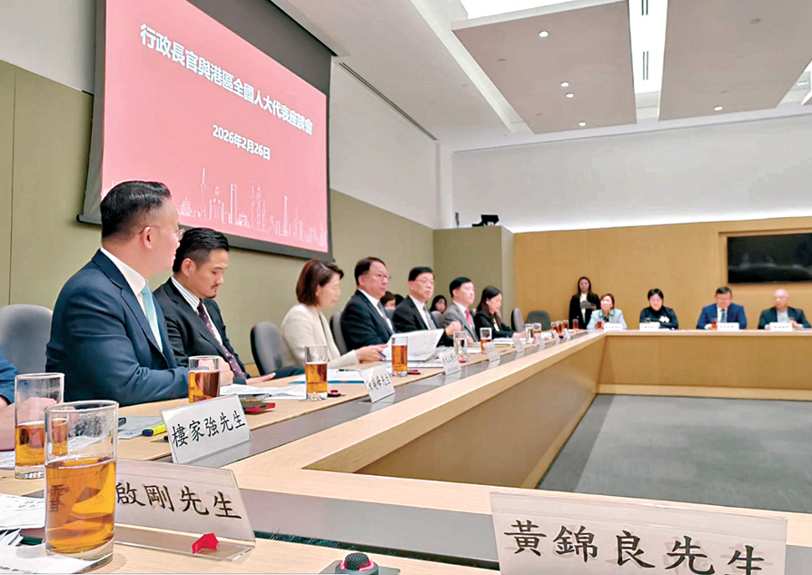 ●李家超昨日在政府总部与部分港区全国人大代表举行座谈会。
